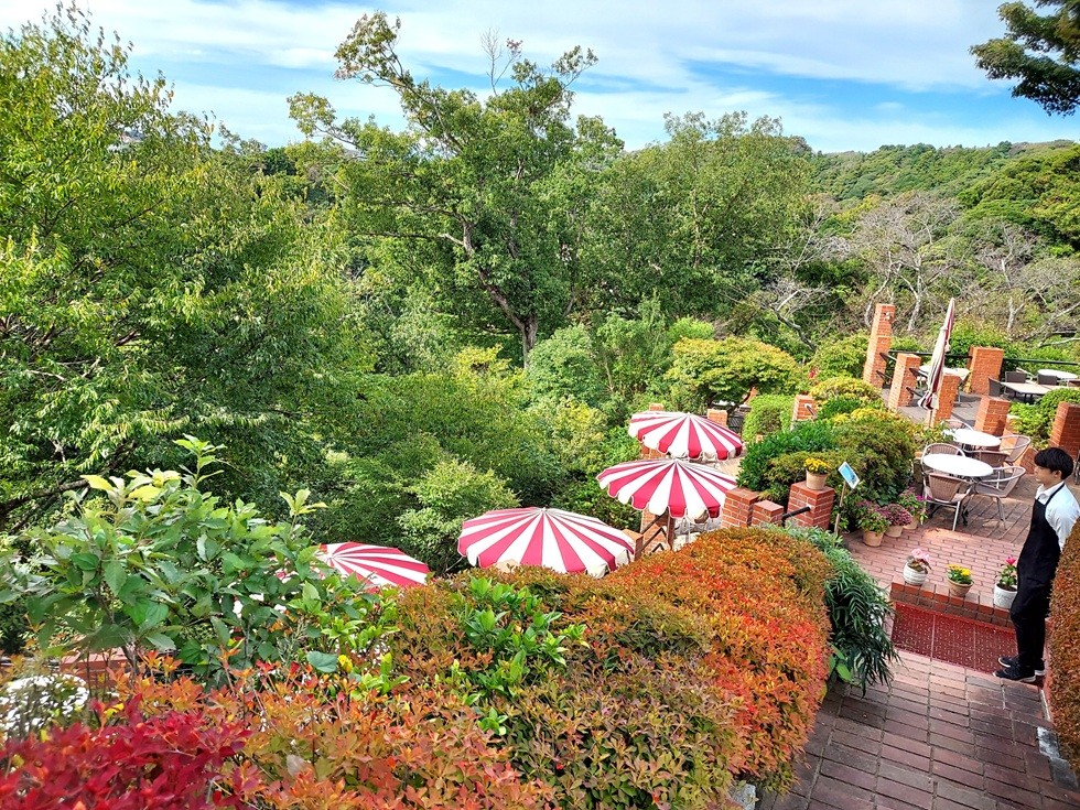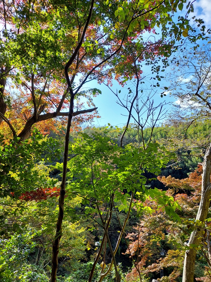 秋の陽差しと、色づき始めた緑を楽しみながら