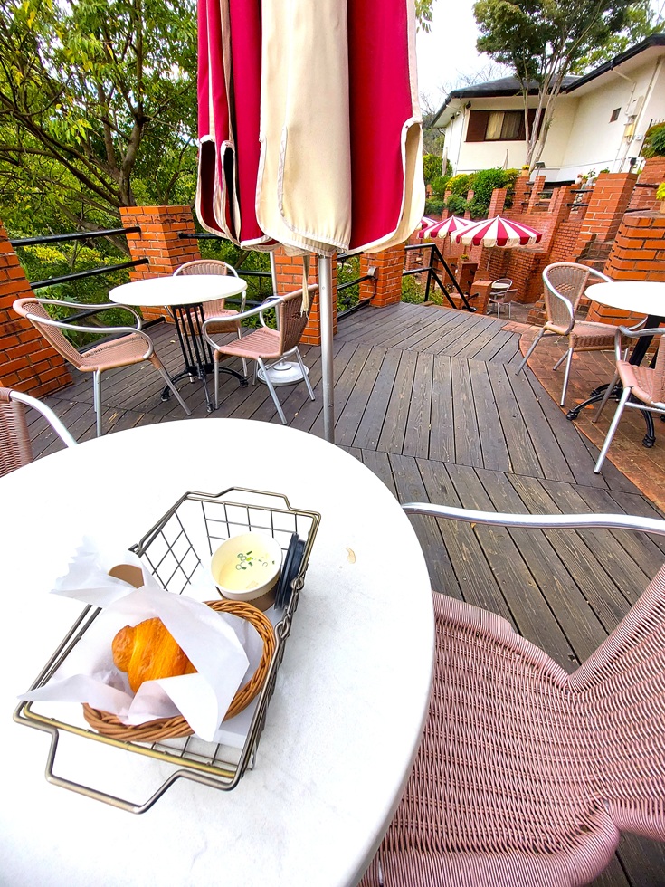 ひらけた山の景色を眺めながら軽食やお茶を楽しめます