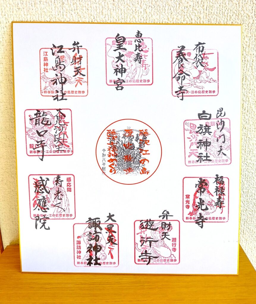 仕上げの真ん中(スタンプ)は、観光案内所や市役所、ふじさわ宿交流館などで押せます